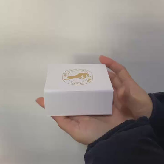Crafted from high-density rigid cardboard, this box features a clean white matte exterior paired with a gold foil stamped logo, delivering a timeless and elegant look ideal for high-end jewelry brands.